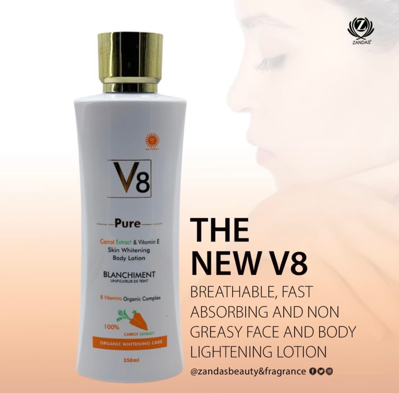 V8 Pure Carrot Extract & Vitamin E Skin Lightening Body Lotion, breathable face and body lotion leaves your skin moisturized without a sticky or greasy feel due to the fast absorbing and breathable formula